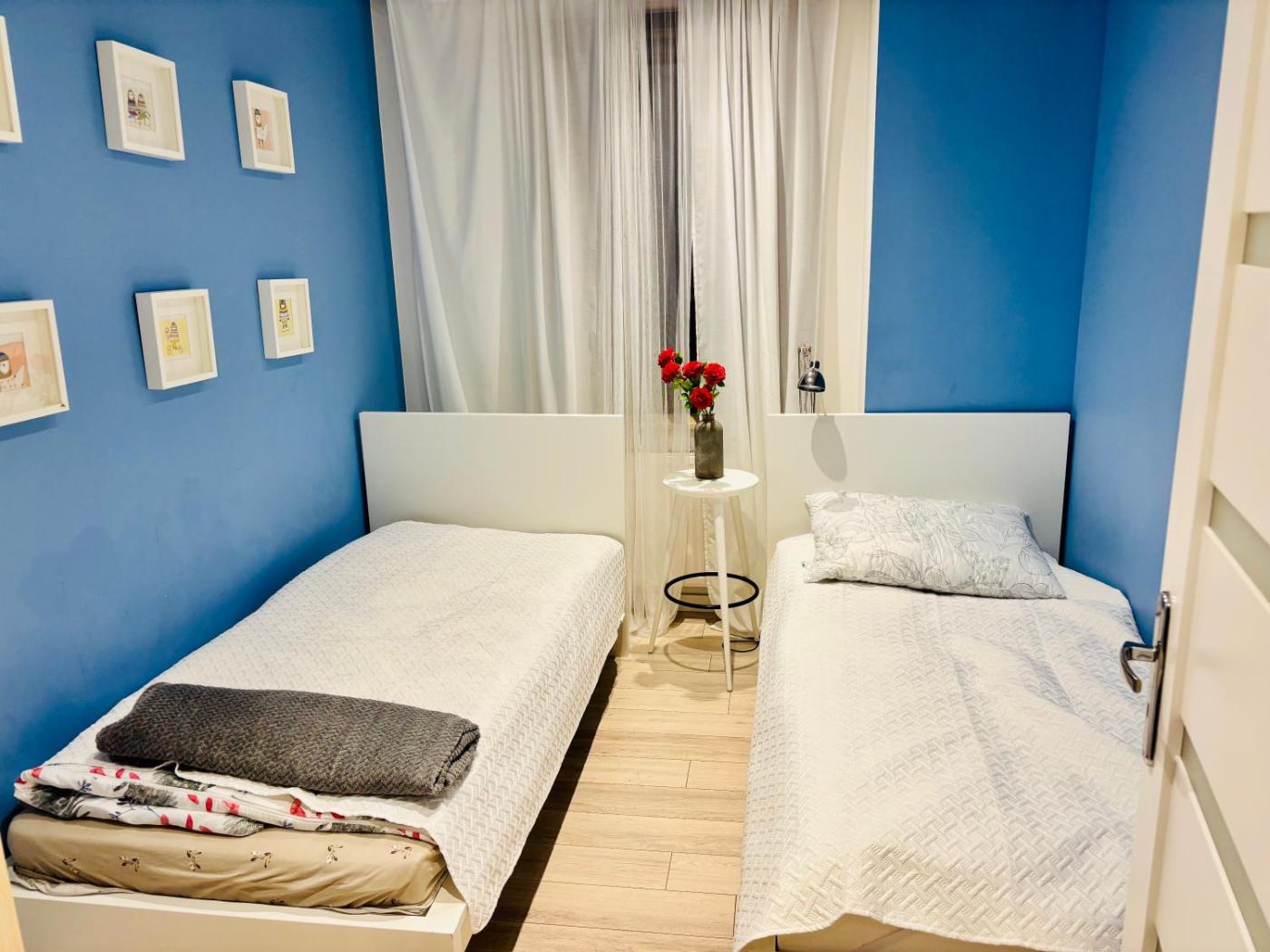 Apartament z 2 sypialniami i balkonem. This air-conditioned apartment comprises 1 living room, 2 separate bedrooms and 1 bathroom with a bath. The well-equipped kitchen features a stovetop, a dishwasher, kitchenware and an oven. Featuring a terrace with garden views, this apartment also provides a washing machine and a flat-screen TV. The unit offers 4 beds. Apartament - 5 osobowy. Powierzchnia pokoju ok.: 56 mkw.