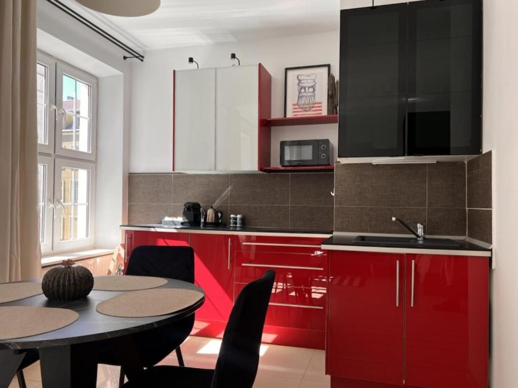 Apartament typu Deluxe. Boasting a private entrance, this apartment also includes 1 bedroom, a seating area and 1 bathroom with a shower and a hairdryer. In the well-fitted kitchenette, guests will find a stovetop, a refrigerator, a dishwasher and kitchenware. The apartment offers a flat-screen TV with streaming services, a washing machine, a tea and coffee maker, a dining area as well as city views. The unit has 2 beds. Apartament - 4 osobowy. Powierzchnia pokoju ok.: 34 mkw.