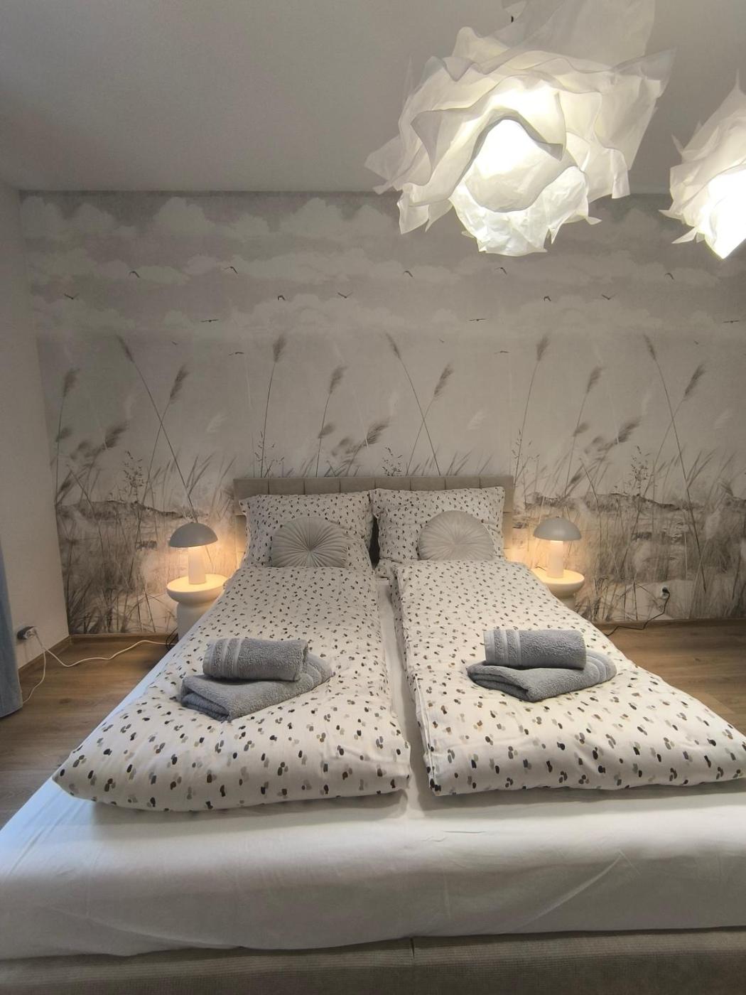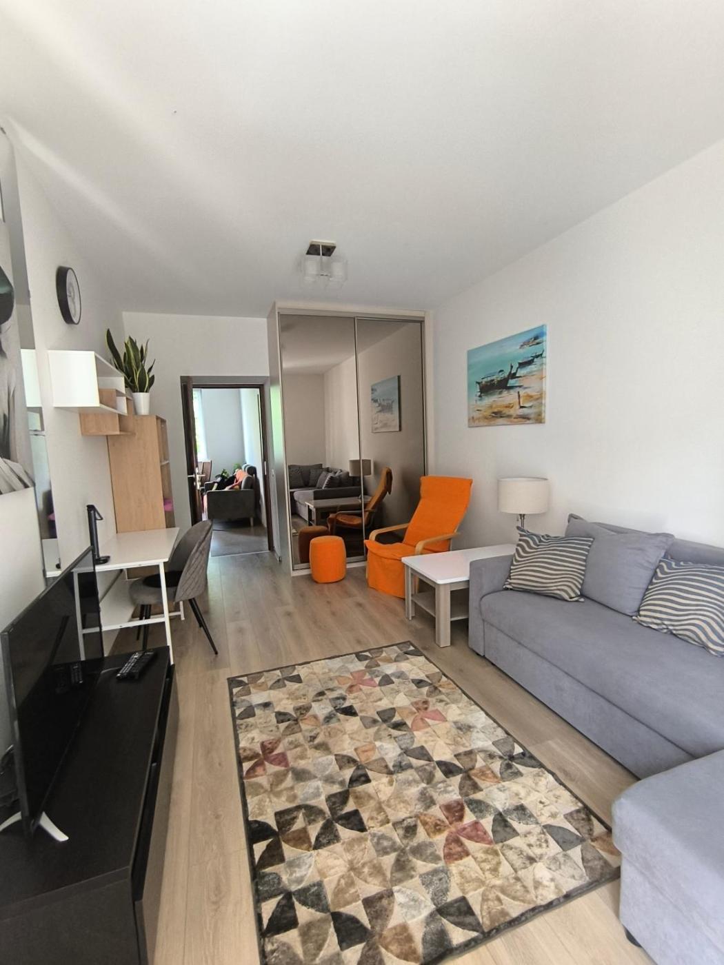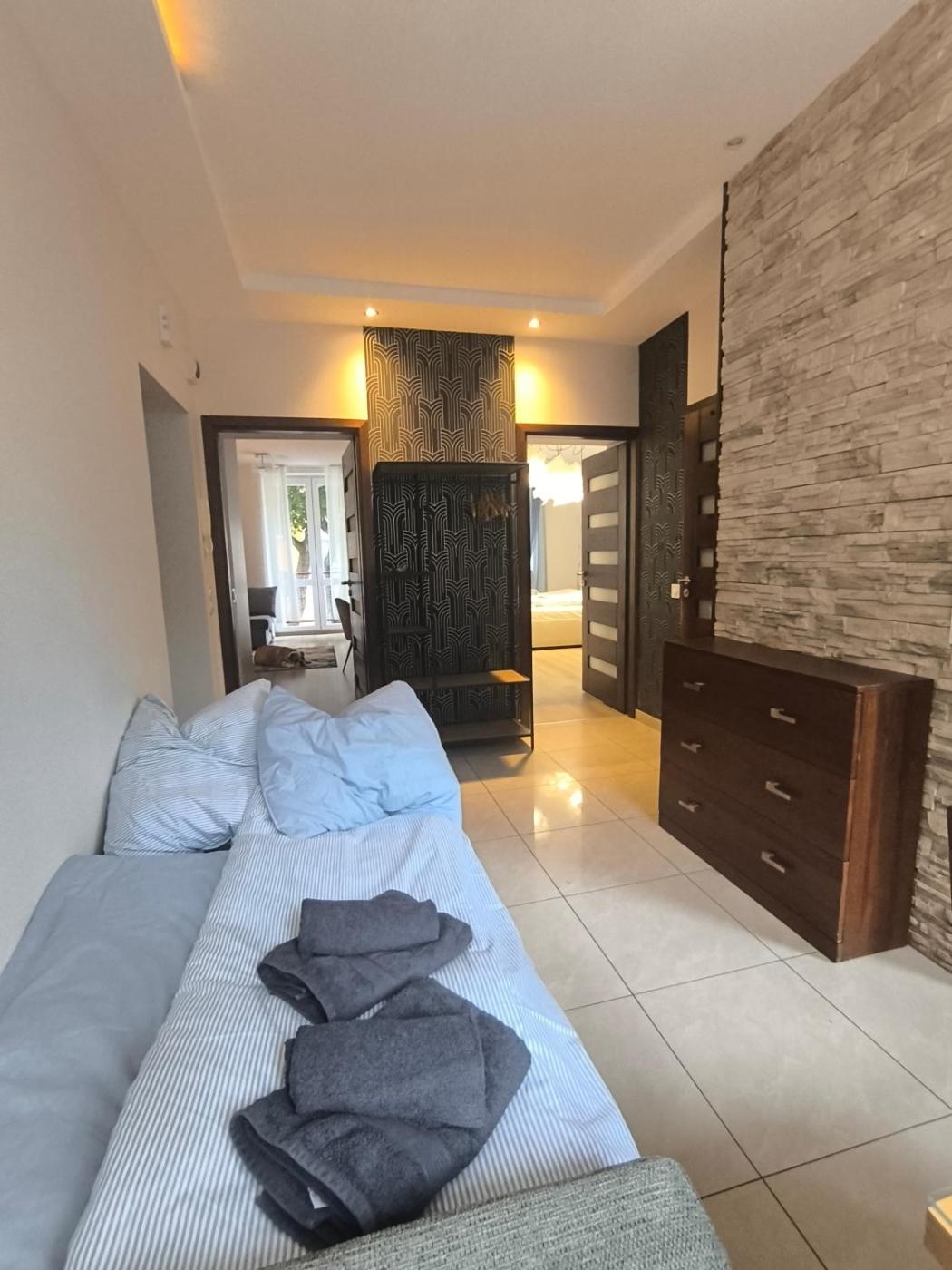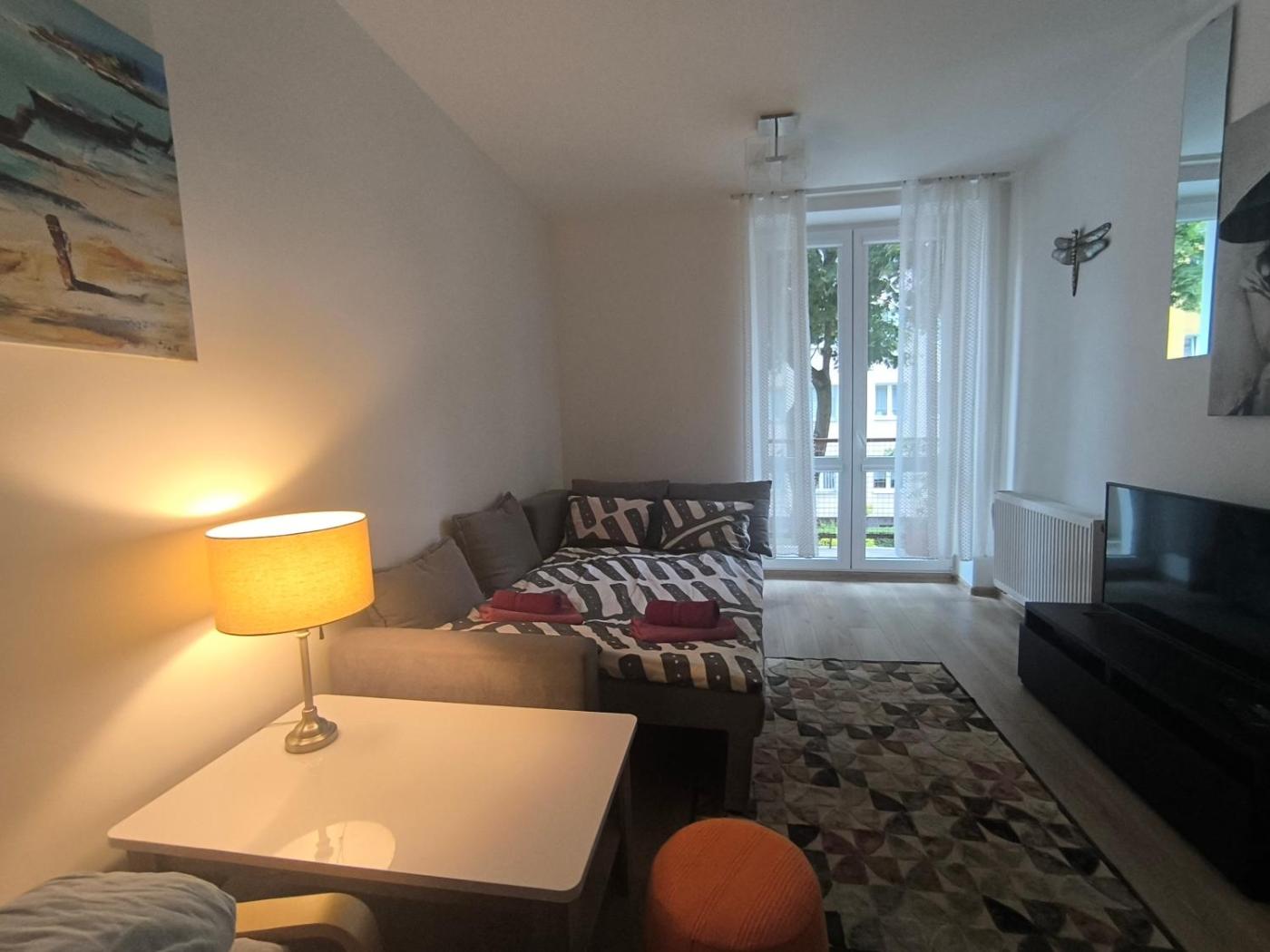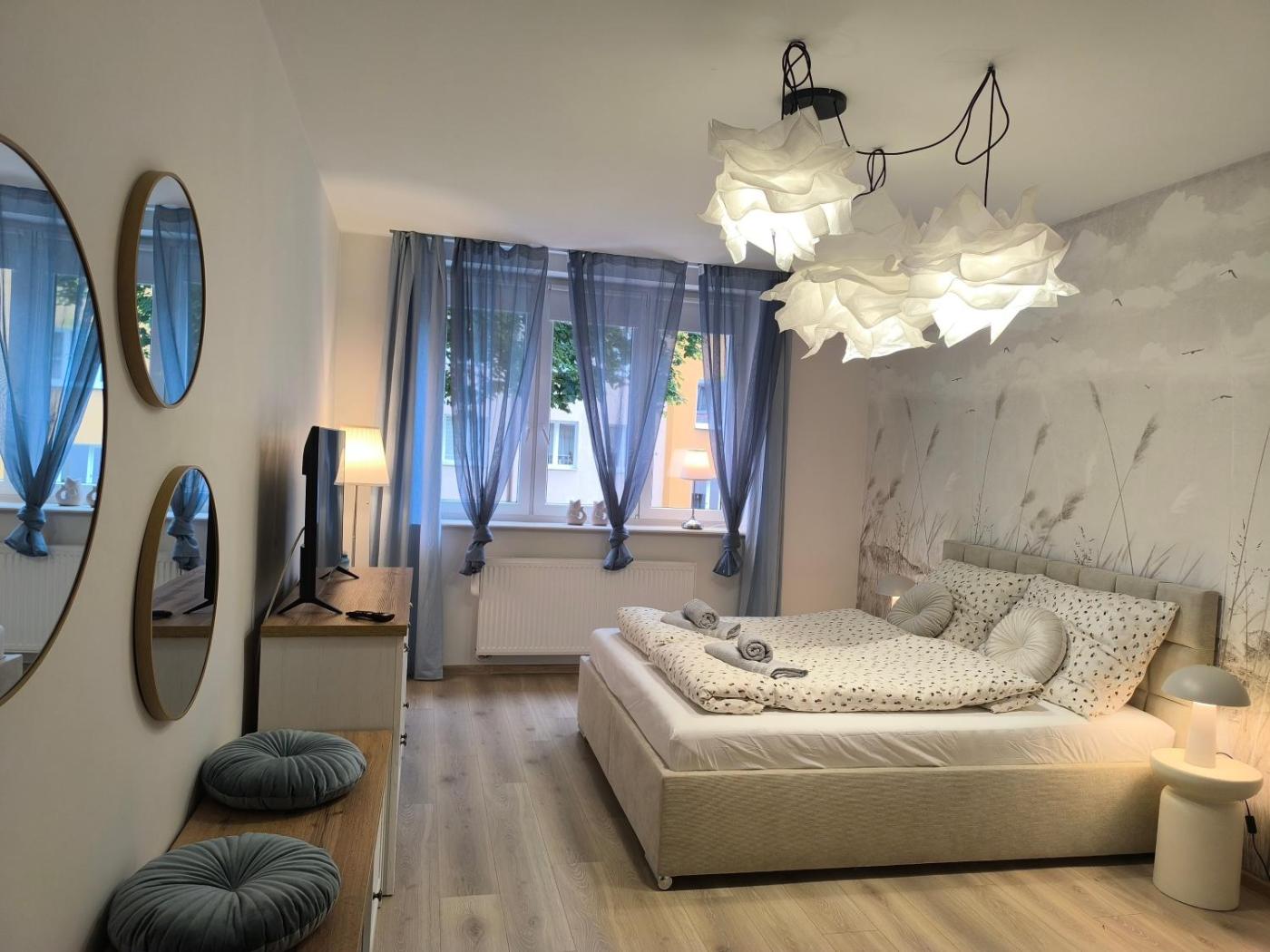 Apartament z 2 sypialniami. The apartments kitchenette, which features a refrigerator, is available for cooking and storing food. The apartment provides a washing machine, a dining area, a balcony with garden views as well as a shared bathroom featuring a bath. The unit offers 3 beds. Apartament - 5 osobowy. Powierzchnia pokoju ok.: 60 mkw.