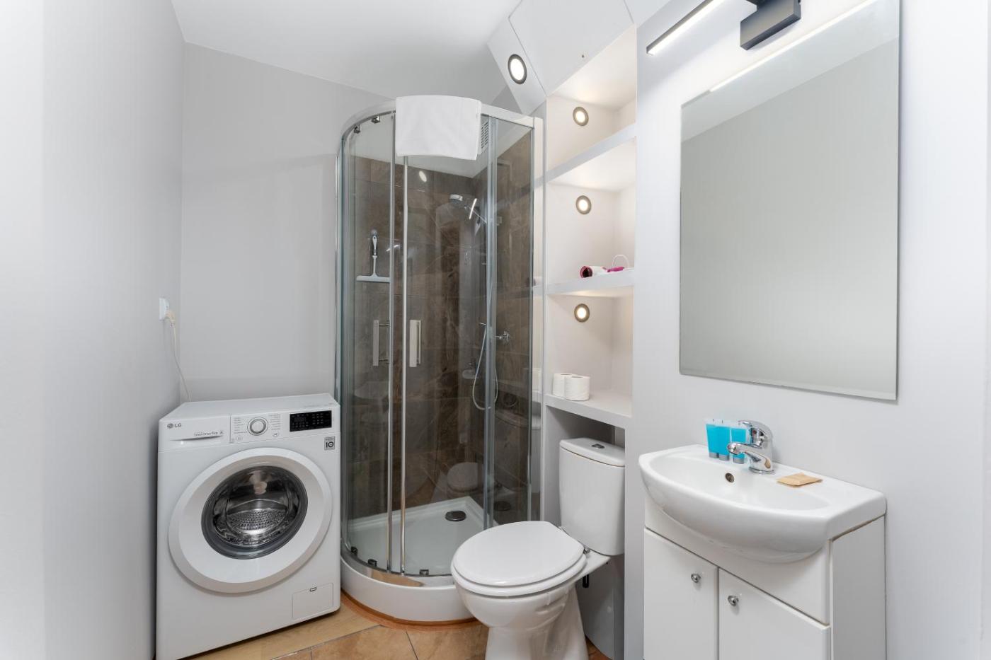 Oferta apartamentu obejmuje sypialnię (1), salon, kuchnię z pełnym wyposażeniem, w tym lodówką i czajnikiem, a także łazienkę (1) z prysznicem oraz bezpłatnym zestawem kosmetyków. W apartamencie zapewniono ręczniki i pościel.