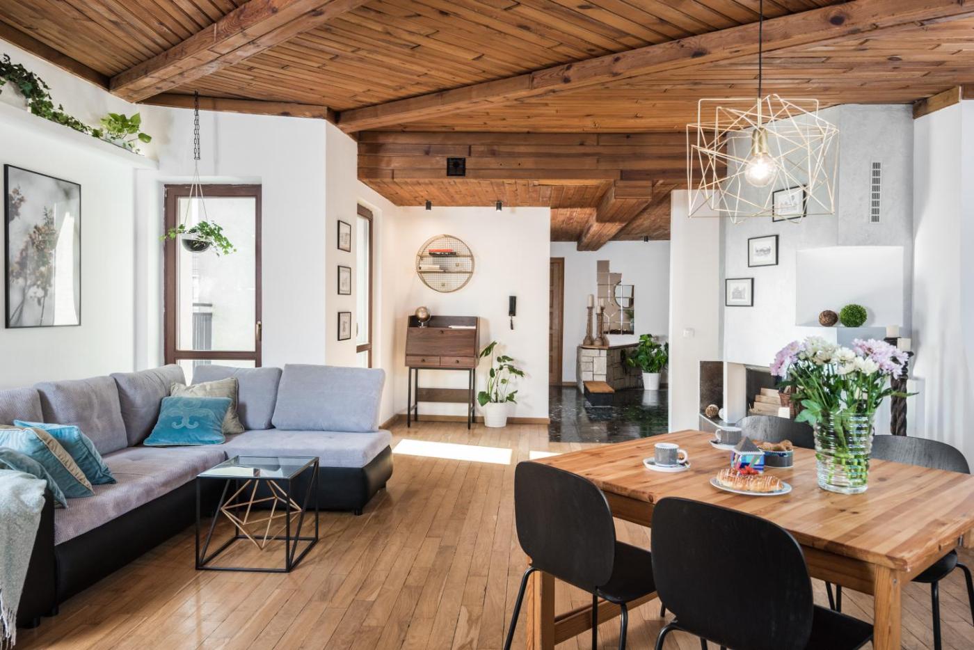 Apartament typu Deluxe z 5 sypialniami. This apartment features a fireplace. The apartment offers a dining area, a wardrobe, as well as a shared bathroom boasting a walk-in shower and a hairdryer. The well-fitted kitchen has a stovetop, a refrigerator, a dishwasher and kitchenware. The spacious air-conditioned apartment features a flat-screen TV with streaming services, a washing machine, a coffee machine, a seating area as well as mountain views. The unit has 9 beds. Apartament - 16 osobowy. Powierzchnia pokoju ok.: 120 mkw.