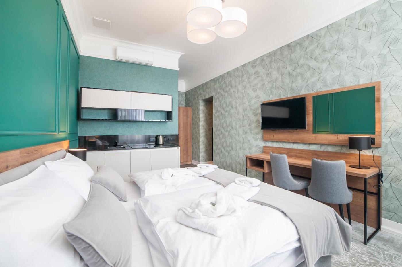 Apartament typu Deluxe. The air-conditioned apartment features 1 bedroom and 1 bathroom with a walk-in shower and a hairdryer. Guests can make meals in the kitchen that is equipped with a stovetop, a refrigerator, a dishwasher and kitchenware. The apartment provides soundproof walls, a tea and coffee maker, a seating area, a flat-screen TV with satellite channels, as well as ancourtyard view. The unit offers 2 beds. Apartament - 3 osobowy. Powierzchnia pokoju ok.: 25 mkw.
