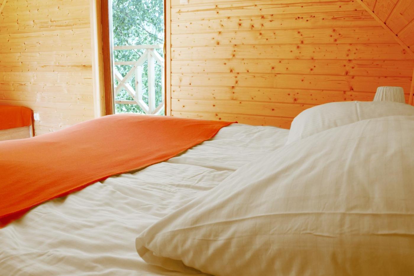 Domek z 2 sypialniami. Boasting a private entrance, this chalet also features 1 living room, 2 separate bedrooms and 1 bathroom with a shower. Guests will find a stovetop, a refrigerator, kitchenware and a toaster in the kitchen. The chalet also comes with a barbecue. Featuring a balcony with garden views, this chalet also features a seating area and a flat-screen TV. The unit has 4 beds. Domek - 6 osobowy. Powierzchnia pokoju ok.: 65 mkw. ;
