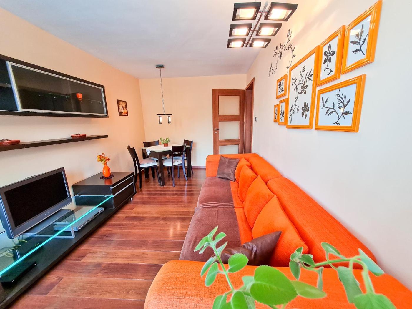 Apartament z 1 sypialnią. In the fully equipped kitchen, guests will find a stovetop, a refrigerator, kitchenware and an oven. This apartment has a washing machine, a wardrobe, a flat-screen TV and a balcony. The unit has 2 beds. Apartament - 4 osobowy. Powierzchnia pokoju ok.: 47 mkw.