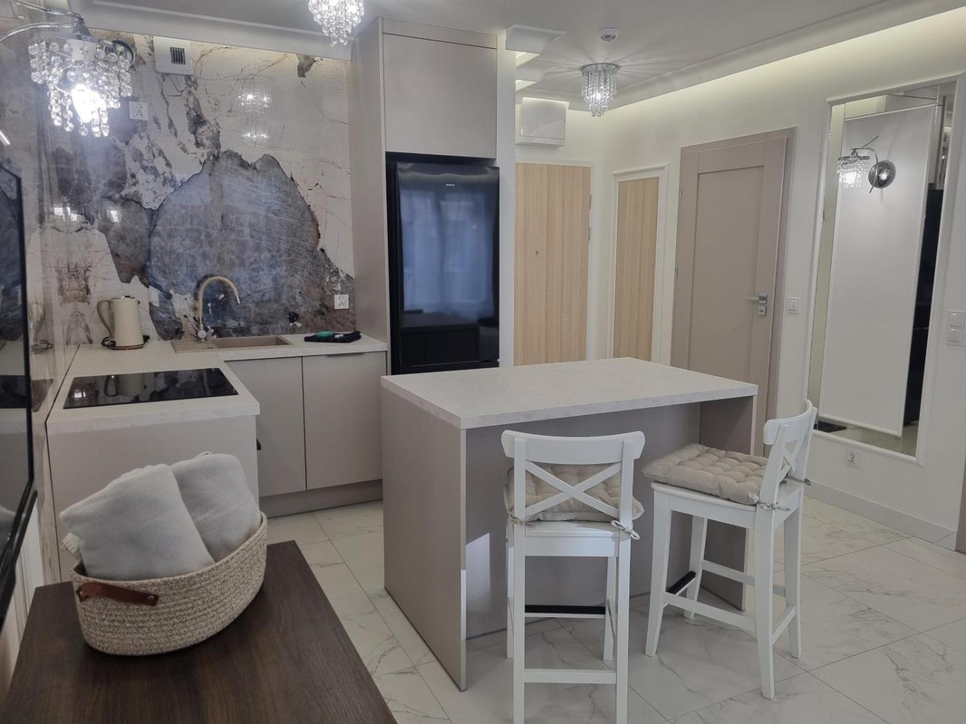 Apartament. This apartment comes with 1 bedroom, kitchenette and 1 bathroom with a walk-in shower. Guests can make meals in the kitchenette that features a stovetop, a refrigerator, kitchenware and an oven. Boasting a balcony with city views, this apartment also features a wardrobe and a flat-screen TV. The unit has 1 bed. Apartament - 2 osobowy. Powierzchnia pokoju ok.: 32 mkw.
