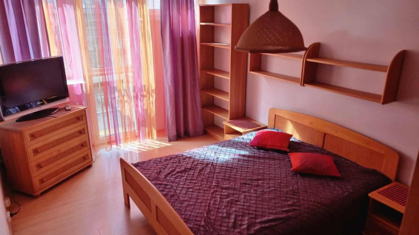 W apartamencie do dyspozycji gości przygotowano sypialnię (1) oraz kuchnię. Wyposażenie obejmuje też telewizor z płaskim ekranem.