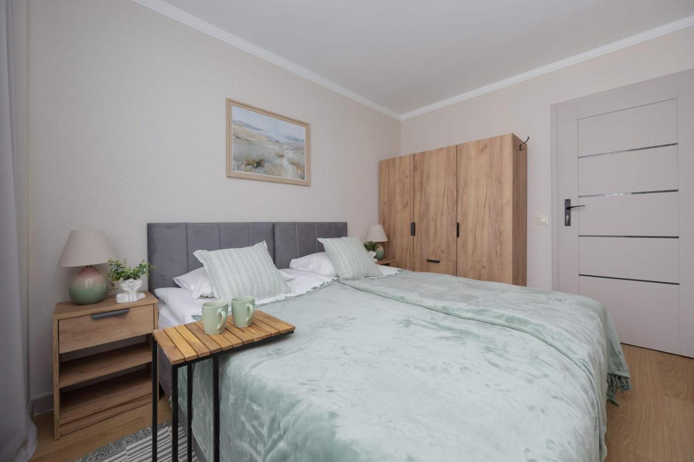 Apartament. Boasting a private entrance, this air-conditioned apartment includes a kitchen, 2 bedrooms and 1 bathroom with a shower and a hairdryer. In the well-fitted kitchen, guests will find a stovetop, a refrigerator, a dishwasher and kitchenware. This apartment has a washing machine, a tea and coffee maker, a flat-screen TV with streaming services and a balcony. The unit has 4 beds. Apartament - 5 osobowy. Powierzchnia pokoju ok.: 38 mkw.