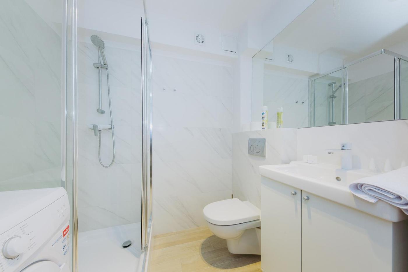 W apartamencie zapewniono sypialnię (1), kuchnię z lodówką i płytą kuchenną, a także łazienkę (1) z prysznicem, suszarką do włosów oraz pralką. W apartamencie zapewniono ręczniki i pościel.