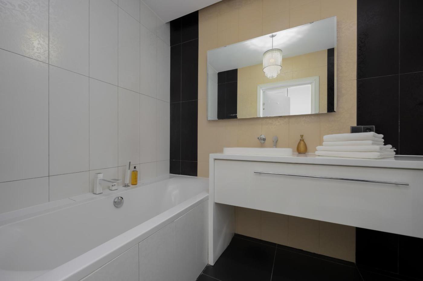 W apartamencie znajduje się telewizor z płaskim ekranem. Wyposażenie aneksu kuchennego obejmuje lodówkę, zmywarkę, mikrofalówkę, a także ekspres do kawy i czajnik.